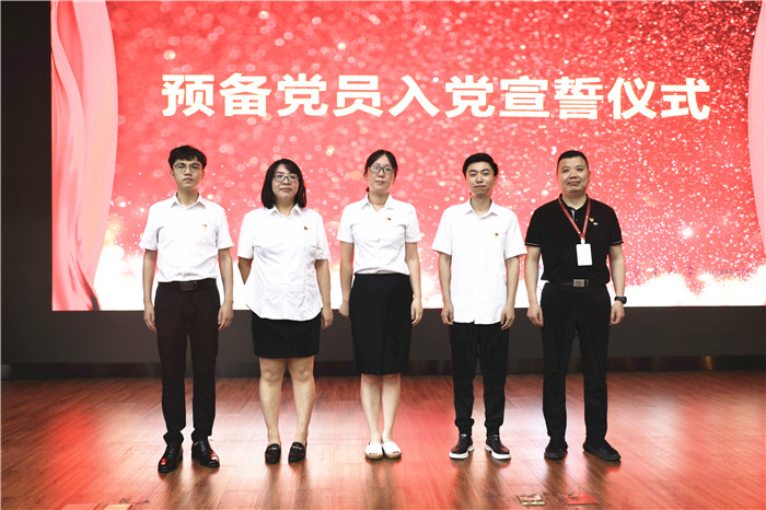 朱文宗院长为4名预备党员佩戴党徽,鼓励每一位预备党员亮出党员身份,强化党员意识,树立党员形象。