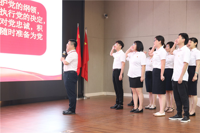 王庆来书记带领全体党员面向鲜红的党旗郑重宣誓,满怀激情的宣誓声激励党员不忘初心、牢记使命,做新时代合格共产党员。