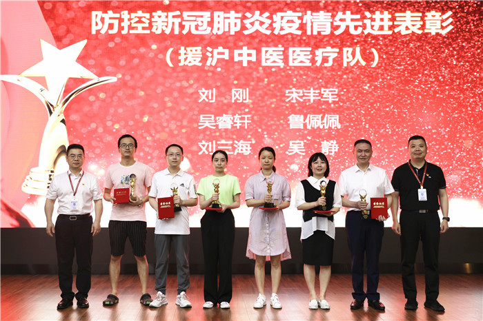 会上对援沪医疗队、援沪采集队及援沪中医医疗队共37人进行表彰,王庆来书记和朱文宗院长为受表彰人员颁发荣誉证书及纪念奖杯。