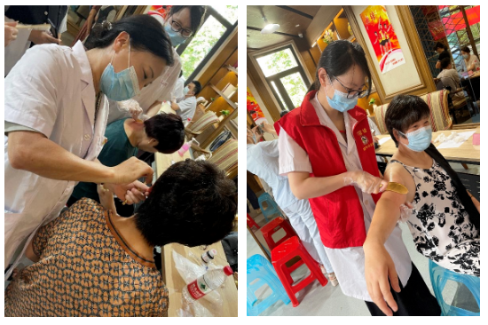 7月10日,绿帽社 内科第一党支部联合新桥未来社区在中央湖小区开展“红七月·服务月”专家下沉健康义诊活动,以实际行动服务社会,助力“党群连心、共富助跑”。