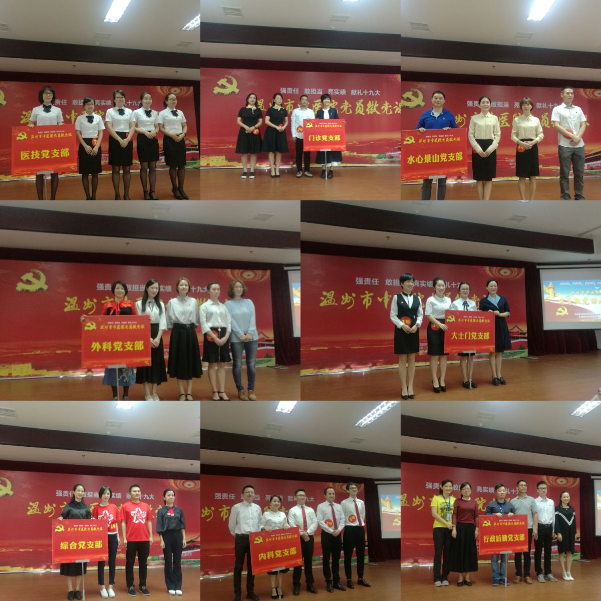 经过激烈的角逐,门诊党支部获得本次比赛的团体一等奖,大士门院区党支部和水心景山院区党支部获团体二等奖,行政后勤党支部、外科党支部、内科党支部获团体三等奖,医技党支部、综合党支部获组织奖。外科党支部汪海敏获最佳口才奖,水心景山院区党支部徐甜甜获最佳形象奖,水心景山院区党支部叶必宏获最佳内容奖,大士门院区党支部王慧静获最佳领队奖。