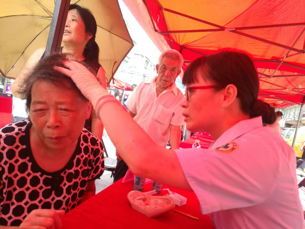 7月21日上午,我院党委与经济科教频道第一第二党支部联合到洞头区大门镇朝阳广场参加“红七月 服务日活动”。在活动现场,我院医务人员为当地社区居民开展冬病夏治、健康咨询、耳穴埋豆、量血压、测血糖等义诊活动,并发放绿帽社 特制小包装伏茶药材200余份,发放健康教育宣传资料300余份,共接诊及健康咨询村民300余人次,受到当地居民好评。