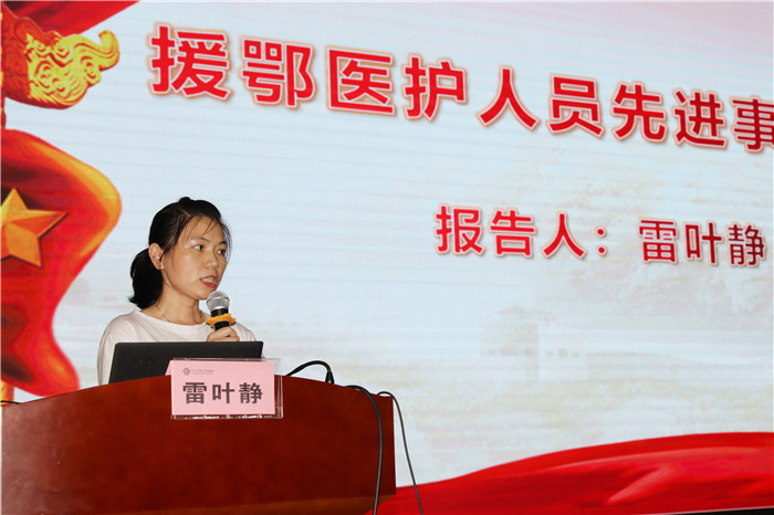 在表彰环节,通报了第二季度党员先锋获奖名单,传达了市级部门对于在疫情防控、复工复产中事迹突出的党组织和党员干部的通报表扬,并由我院两位援鄂护士雷叶静和陈瑞霞同志分别作援鄂医护人员先进事迹报告,以先进典型带动全体党员争当先进,赶超先进。