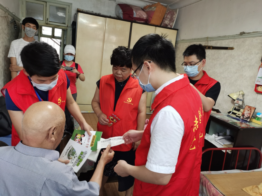 7月8日下午,绿帽社 门诊党支部志愿者们在组织委员邹碧泉同志的带领下走访慰问了水心社区退休老党员,为其家庭送去组织的关怀、节日的问候、夏令用品、预防新冠香囊、口罩及《习近平总书记系列讲话读本》等学习资料。
