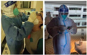 部分队员被分配到病房工作,接管的病区总共有90多张病床,收治的都是新冠肺炎病人。在这里,队员们除了病房的常规工作如查房巡视、处理医嘱、采集核酸等,还要处理患者的吃、穿、用等各种生活问题,帮助联系社区和疫情指挥部。在这里,总能看到他们忙碌的身影。医生们每班查房温暖的问候,护士们微笑的眼睛都给乌鲁木齐的患者带来丝丝温暖。