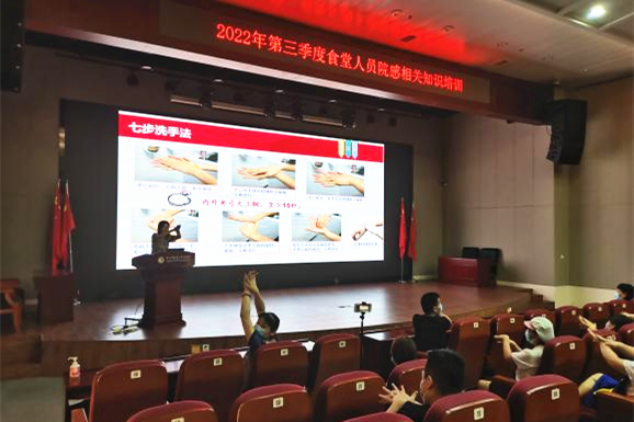 在对食堂人员的培训上,感染管理科反复强调了食品安全的重要性,针对食堂人员的工作要点,着重讲解食堂人员的管理、食堂设施要求、物品存放管理与食物运送及发放等感控知识。要求大家在操作过程中,规范着装,注意个人卫生,严把原料关、加工操作关、洗消关等,做到严防严控,确保医务人员的用餐健康。