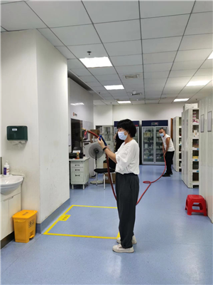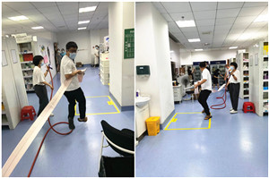 演习开始:张海芬药师发现总路线箱起火冒黑烟,第一时间报告给黄笑夏主任。黄主任到达现场后,下达指令,立即进入紧急状态。