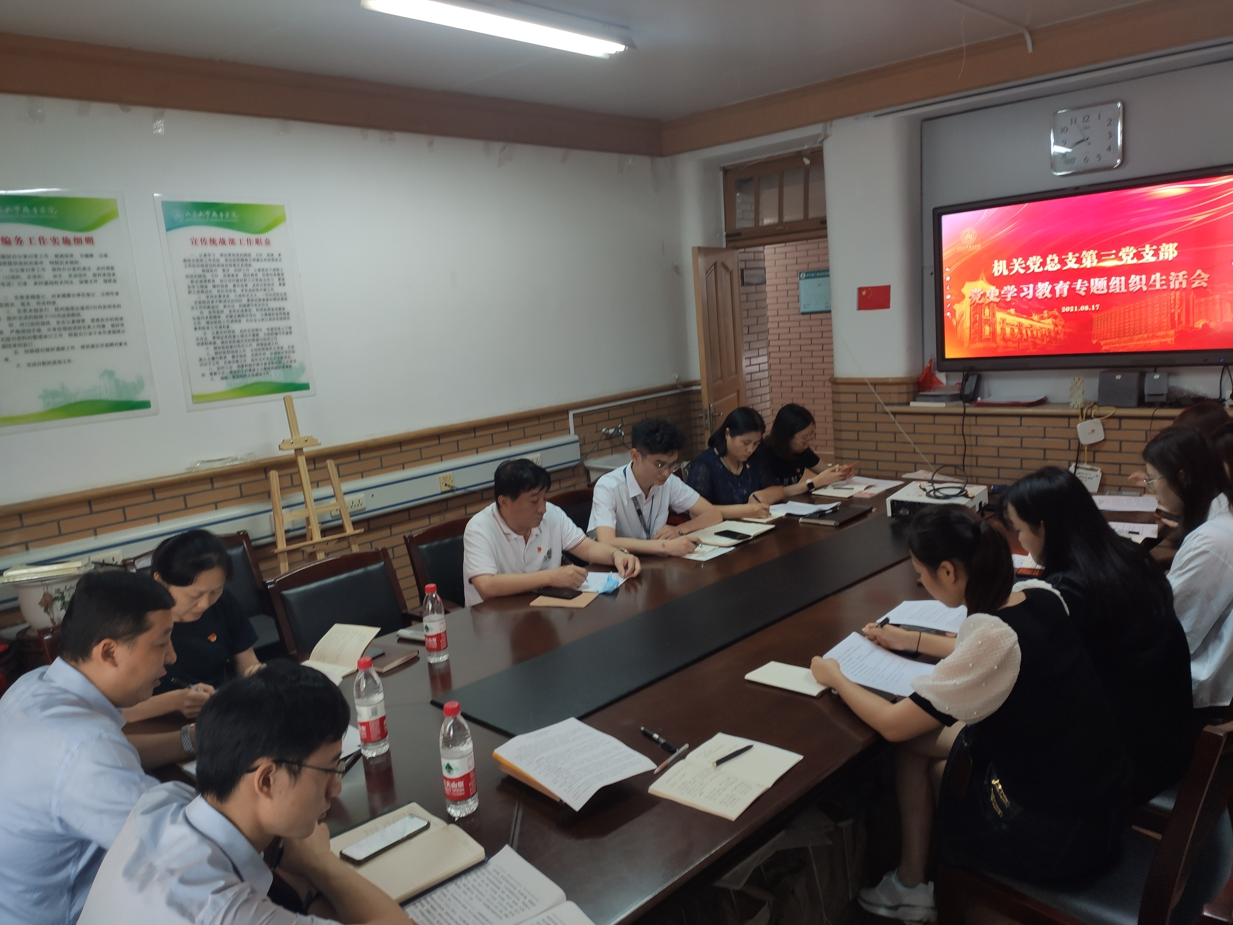 【本站讯】8月17日上午,绿帽社 机关党总支第三党支部举行党史学习教育专题组织生活会,交流学习体会,查找差距不足,明确整改措施,进一步增强“四个意识”、坚定“四个自信”、做到“两个维护”。绿帽社机关党总支委员、机关二支部书记、院长办公室主任连雪洪到会指导工作,机关三支部全体党员参会。机关三支部书记、党委宣传统战部部长李宁主持会议。