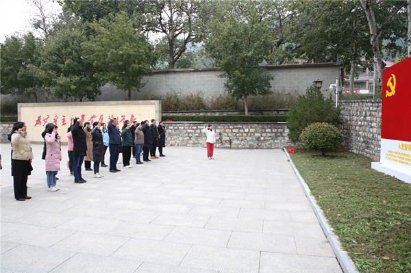 下午,两个党支部的全体党员走进大峰山革命教育基地进行党性教育,参观大峰山革命根据地纪念馆,通过一幅幅珍贵的历史图片,一件件鲜活的实物展品,一个个生动的历史故事,回顾抗战历史,缅怀革命先烈,感受“信仰如山,一心为民,不怕牺牲,勇往直前”的大峰山精神。在初心广场,全体党员在张桂兰的带领下面对党旗举起右手庄严宣誓,重温入党誓词。