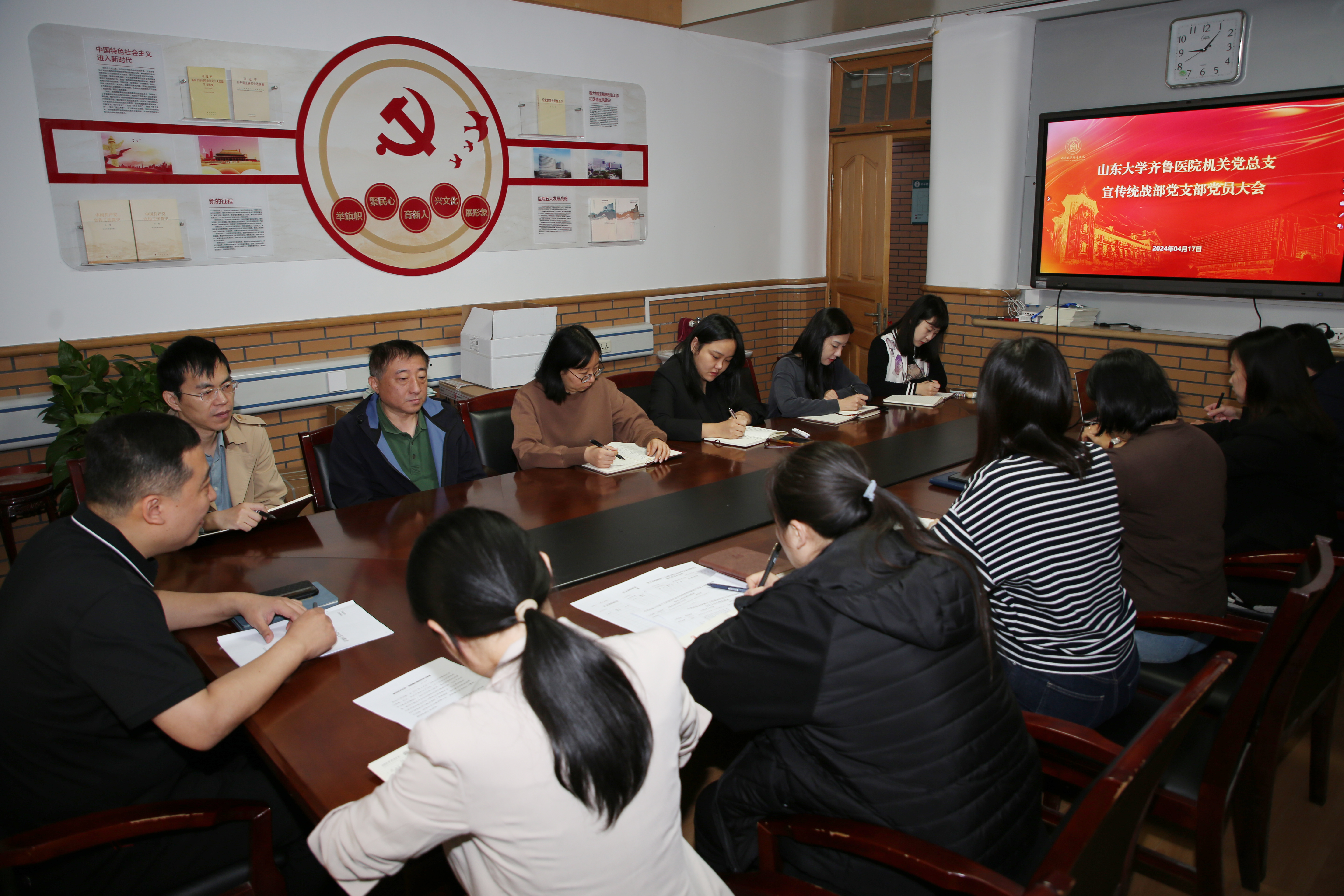 【本站讯】4月17日上午,宣传统战部党支部召开党员大会,正式启动部署支部党纪学习教育工作。宣传统战部党支部书记、党委宣传统战部部长李宁主持会议,党支部全体党员、预备党员参加会议。