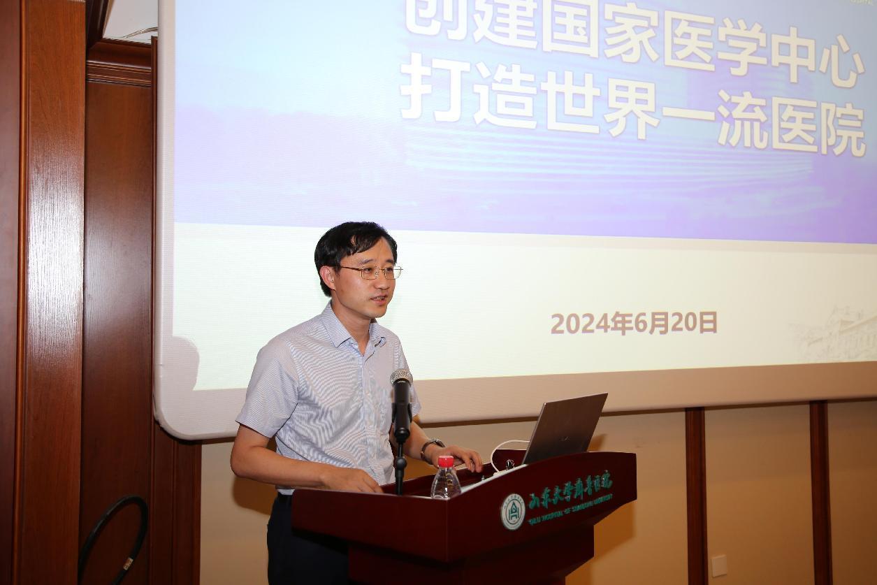 【本站讯】6月20日下午,党委组织部、党委宣传统战部、离退休职工服务中心、保卫处在院史馆报告厅举行半年工作例会。党委书记陈鑫出席会议并讲话,党委副书记张欣平主持会议,院长助理连雪洪出席会议并通报国家医学中心创建工作的有关情况。