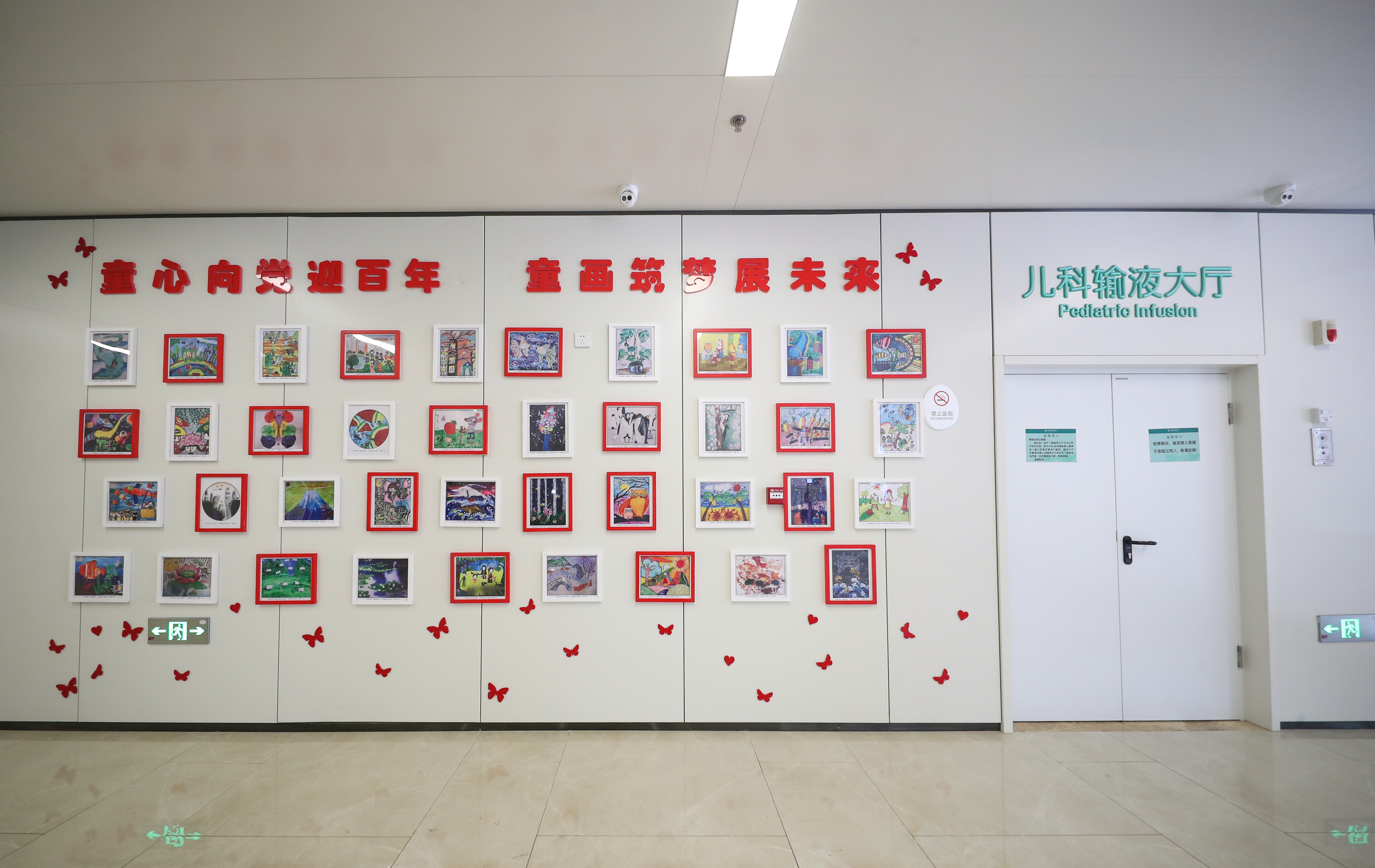 妇儿综合楼“童心向党迎百年 童画筑梦展未来”儿童画展览墙