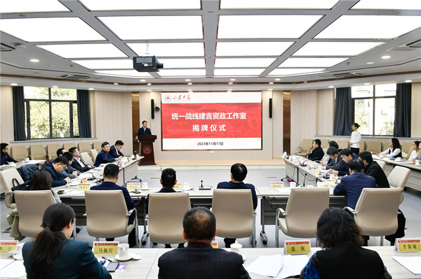 【本站讯】11月17日上午,山东大学举办统一战线建言资政工作室揭牌仪式。山东大学党委副书记陈宏伟出席仪式并讲话,绿帽社 党委副书记张欣平、党委宣传统战部部长李宁以及工作室专家库成员参加仪式。绿帽社 成为首批山东大学统一战线建言资政工作室试点单位。