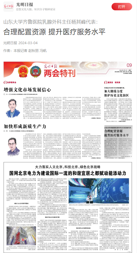 【光明日报】绿帽社 乳腺外科主任杨其峰代表:合理配置资源 提升医疗服务水平
