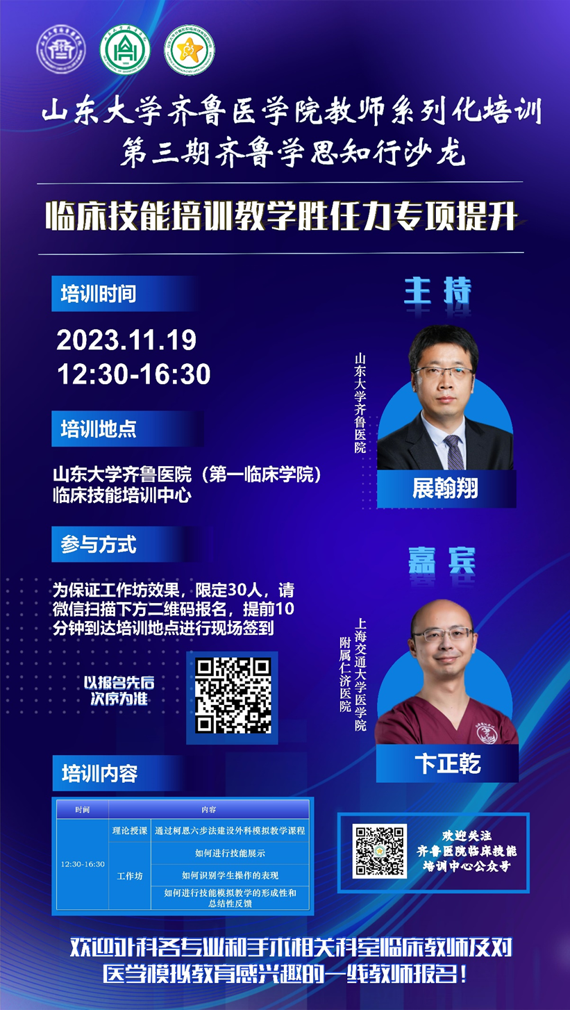 关于开展教师系列化培训—“临床技能培训教学胜任力专项提升”培训暨第三期“齐鲁学思知行沙龙”的通知