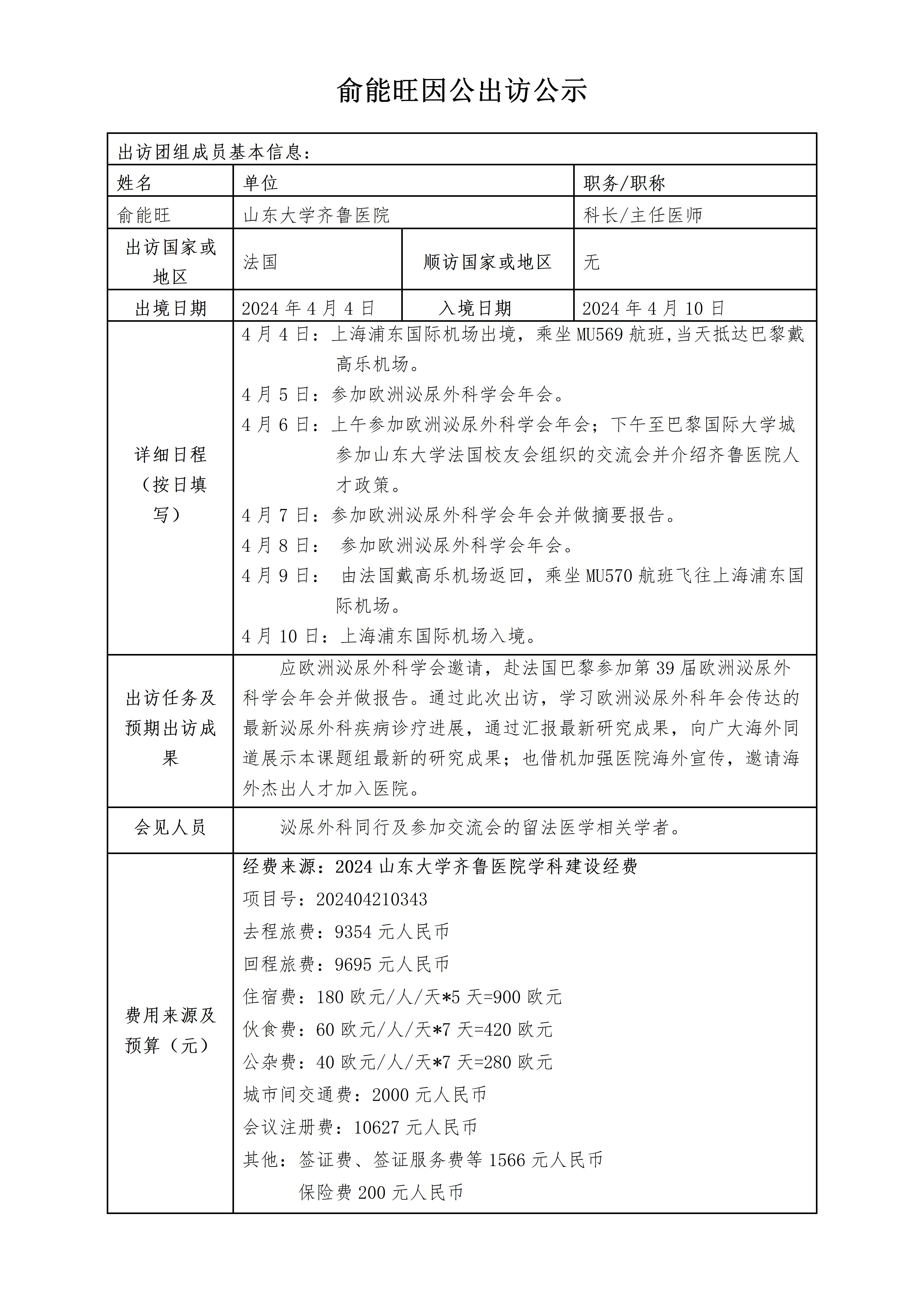 俞能旺因公出访公示