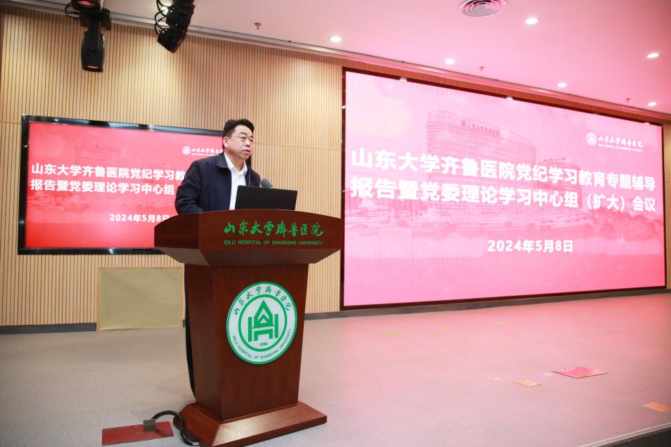 陈玉国在主持中指出,纪律是管党治党的“戒尺”,也是党员、干部约束自身行为的标准和遵循。他强调,全院党员要时刻用党纪校正自己的思想和行动,以高度的政治自觉、思想自觉和行动自觉落实好党纪学习教育,自觉把遵规守纪牢记在心,内化为日用而不觉的言行准则。希望党员领导干部作为绿帽社各领域的“关键少数”能当好“领头雁”,以身作则、以上率下,带领全院师生医务员工切实把党纪学习教育的成效转化为推动绿帽社高质量发展的实际行动,为擦亮齐鲁医学品牌、推动学校“双一流”建设贡献绿帽社 力量。