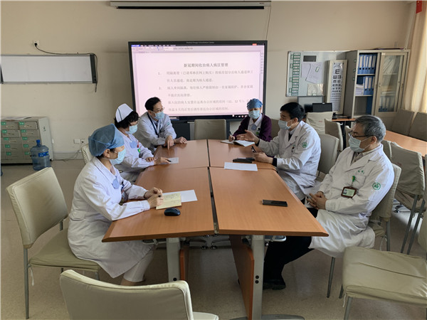为避免人员聚集,徐淑军和程莲每天通过科室微信群电话会议,部署工作重点和公布最新疫情情况,确保住院患者和全体医护人员的安全。从科室人员的一级防护到患者和家属的健康教育,全体人员都积极响应,认真工作,病区实行24小时门禁管理,发放陪护证,谢绝探视,检测好患者和家属的体温,病区每日开窗通风两次,地面用含氯消毒液擦拭消毒,大家对患者和家属进行知识宣教,消除他们恐惧、焦虑的心理,确保各项措施落实到位。