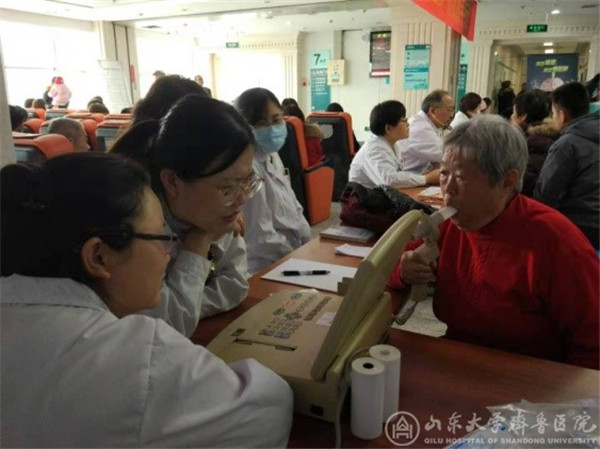 义诊现场,呼吸科医护人员免费为患者诊治并进行慢阻肺疾病相关内容的宣教、免费肺功能检查、戒烟教育等。专家们对患者及家属提出的各种有关慢阻肺的问题给予耐心解答,并向他们普及慢阻肺疾病的疾病特点等,指导患者正确、规范应用药物。肺功能检查是慢阻肺诊断的金标准,也是疾病监测的重要工具。此次义诊免费为患者进行肺通气功能检查,同时提高公众的肺功能检查知晓率,推广“像量血压一样检查肺功能”的健康理念。戒烟咨询也是前来参加义诊活动的患者和家属们都很关注的内容。活动历时2个多小时,共接待患者和家属近百人,发放宣传材料100余份,为大约40名患者或家属免费测量了肺功能。下午,在呼吸科病房举行了内容丰富、生动的患教会,让患者及家属更加全面地了解和应对慢阻肺疾病。
