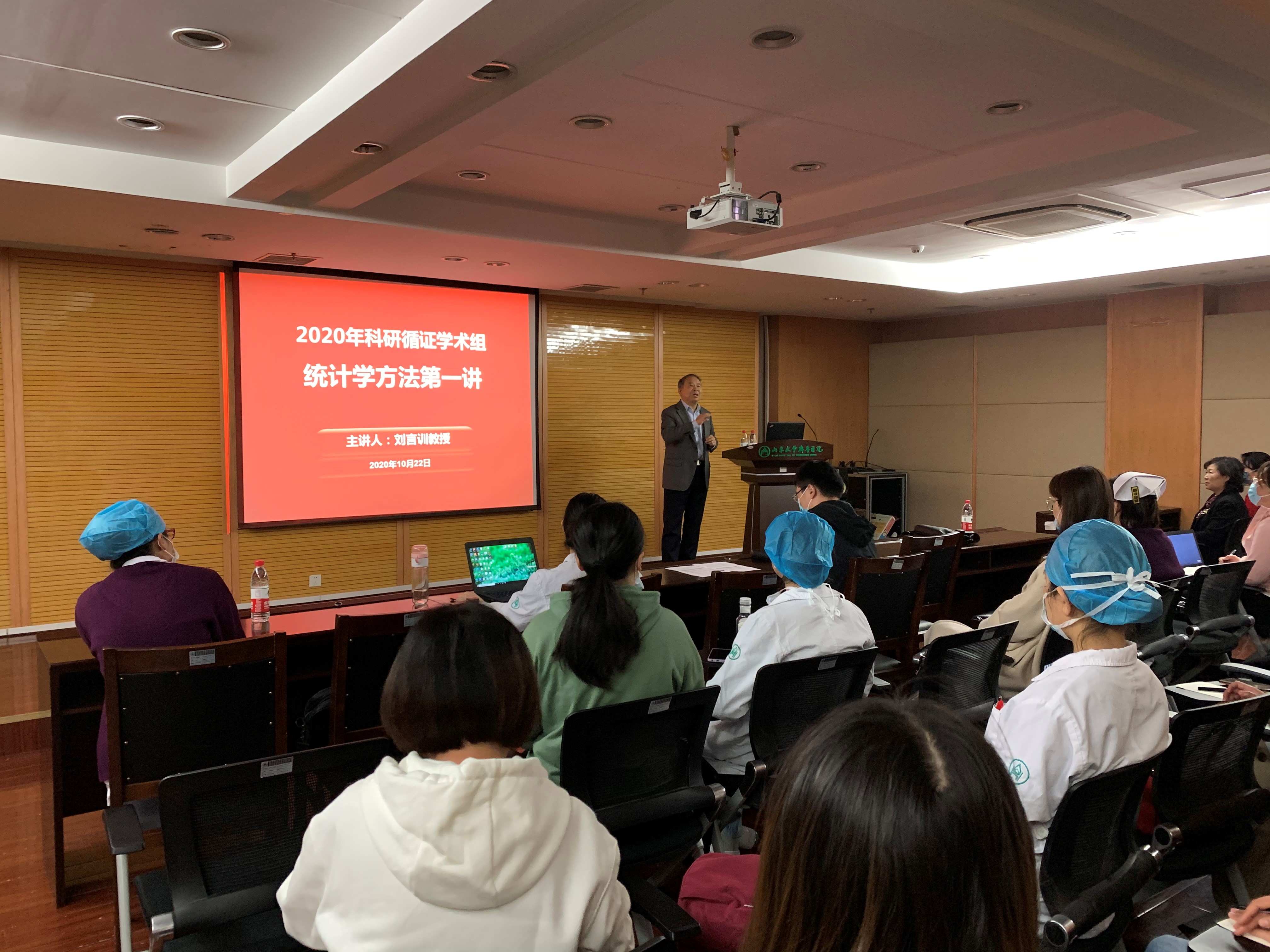 【本站讯】 为提升护理人员科研水平,提高护理论文书写质量,10月22日下午,护理部组织举办了护理科学循证学术组“统计学方法”主题培训会,特邀请山东大学生物统计学教授刘言训现场授课,护理部主任曹英娟出席,会议由护理部副主任刘春兰主持,40余名临床一线全日制硕士研究生护理人员参加了此次培训。
