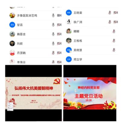 【本站讯】10月28日,为深入学习习近平总书记在抗美援朝胜利70周年上的讲话,神经内科党支部采用线上会议形式召开“弘扬伟大抗美援朝精神”主题党日活动。活动由神经内科党支部书记、主任刘艺鸣主持,党小组长戴廷军副主任医师作主讲。