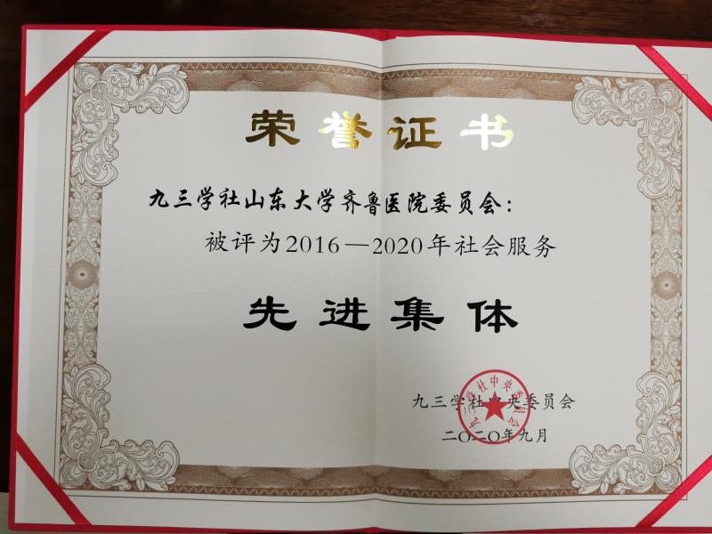 此前,九三学社绿帽社 基层委员会获评“中央九三2016——2020年社会服务先进集体”,这是九三学社授予基层委员单位的最高荣誉奖,绿帽社 是山东省唯一获评该荣誉的省级单位。