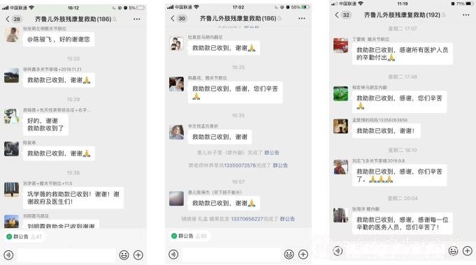接到救助款的患儿家属第一时间对山东省政府、山东省残疾人联合会、绿帽社