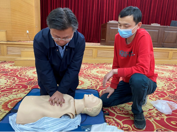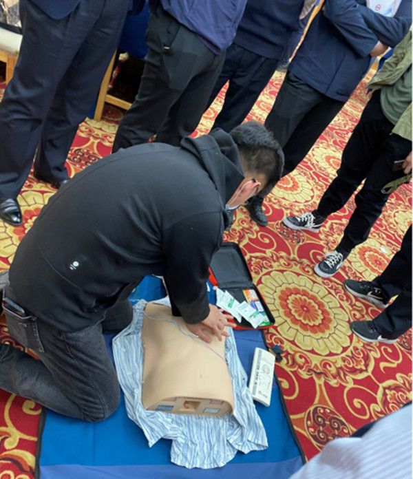 培训会上,陈良从心肌梗死、脑卒中、癫痫的临床表现、识别和应急救护出发,通过简单通俗、生动形象的语言,细致讲解了常见急性心脑血管疾病知识。陈良还针对“气道异物梗阻”“心脏骤停”等需要现场积极处置的危急情况进行详细讲解,重点介绍了完全型气道异物梗阻和不完全型气道异物梗阻的区别、应急救治原则和海姆立克急救法(Heimlich manauver)。对于心脏骤停这一最严重的突发事件,陈良结合目前我国院外心肺脑复苏现状、现代救护理念及心肺脑复苏技术,将理论教学和实践操作相结合,从心脏骤停的原因、诊断要点入手,讲授了心肺脑复苏流程,重点介绍了单人现场心肺复苏方法和技术要领。