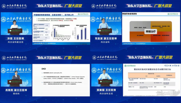 本期讲堂围绕糖尿病的诊断和治疗专题展开,孙磊教授以“早期识别与诊治”为题,详细讲授了如何快速识别糖尿病高危人群及糖尿病患者的科学管理;刘金波副教授从降糖药物的选择、影响因素及联合用药的原则等几个方面讲授了糖尿病患者的药物治疗;肖晓燕副教授以“糖尿病肾病的诊断与治疗”为题,从糖尿病肾病的病理表现、诊断方法、防治以及综合保守治疗模式等多个方面进行了讲解;侯新国教授以“院内血糖及胰岛素泵管理”为题,讲授了住院患者高血糖管理现状,分享了院内血糖及胰岛素泵管理的科学方法和宝贵经验。专家们的授课内容紧扣临床诊疗中的常见问题,为广大青年医师解疑答惑,大家纷纷表示受益匪浅。