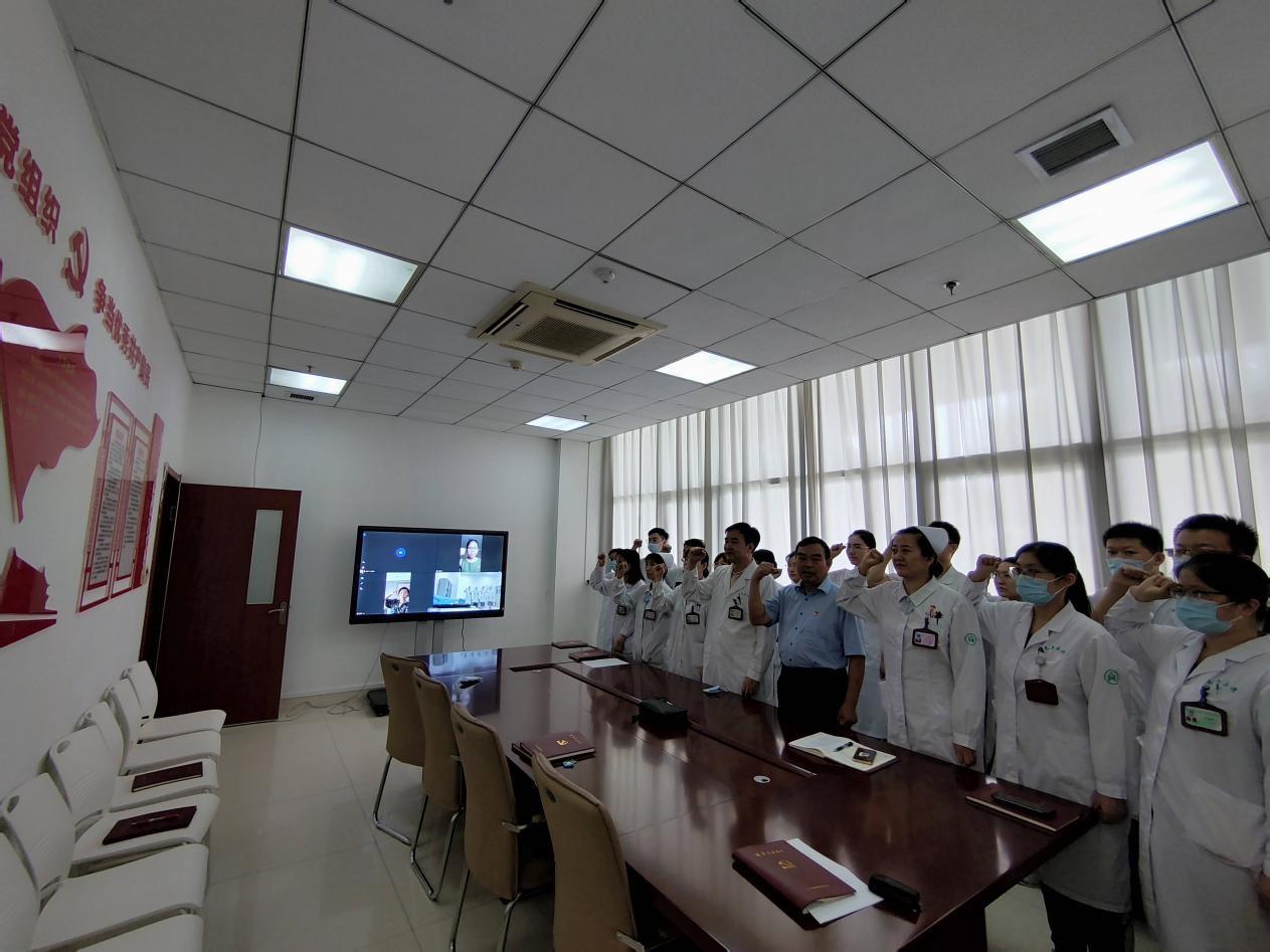 7月1日,门诊第三党支部在中心院区和东院区多个分会场,同时观看了“庆祝中国共产党成立100周年大会”直播,重温中国共产党百年波澜壮阔的征程,聚集在大屏幕前,大家内心充满自豪。直播结束后,由宣传委员张艳艳带领所有党员重温入党誓词,在党旗下庄严宣誓。