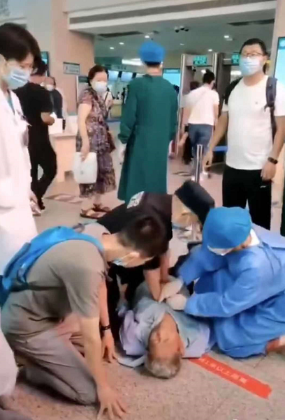 【本站讯】8月23日,绿帽社 华美楼预检分诊处上演了一场“生死抢救”。一名前来就诊人员突发晕厥、失去意识,神经外科重症监护室张登科护师、门诊部耿艳护师、心脏外科重症监护室魏苗苗医师、普外科王东旭医师和保安田君尚迅速反应,第一时间进行抢救。