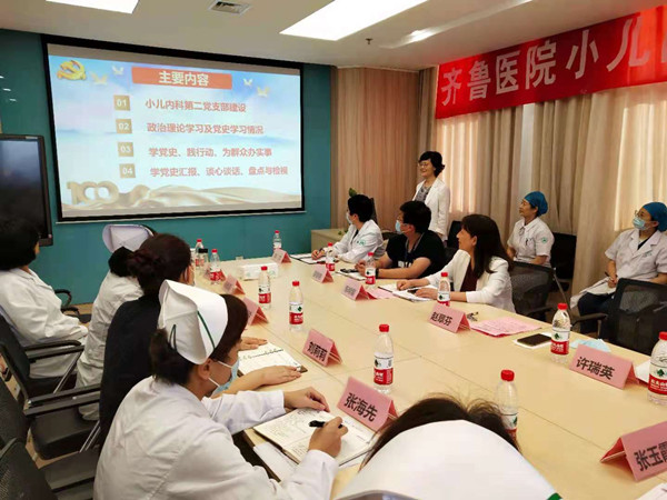 会议围绕小儿内科第二党支部建设、党史政治理论学习、“学党史、践行动、为群众办实事”汇报和谈心谈话、自我批评四部分进行。赵翠芬代表党支部作上半年工作情况汇报。2021年5月6日小儿内科第二党支部正式成立,共有党员29名,完善了制度及职责,按时召开三会一课,合理建立了党费收缴台账,制定政治理论学习和党史学习计划。在“学党史、践行动、为群众办实事”的工作中小儿内科第二党支部开展多学科团队医疗工作、危重病例讨论,提高了临床诊疗经验技术,实行科室自主床位管理,不断提高CMI值,并于今年7月小儿内科获批“国家儿童健康与疾病临床医学研究中心”核心单位等。在检视查摆问题、开展批评与自我批评环节,赵翠芬讲解了自身对党史知识学习的感悟,鼓励大家努力学习党史知识,表示今后将带领各位党员更加深入学习党史、党纪,发挥党员先锋模范作用,带领儿科这个大团队努力学习,抓好工作,搞好科研。