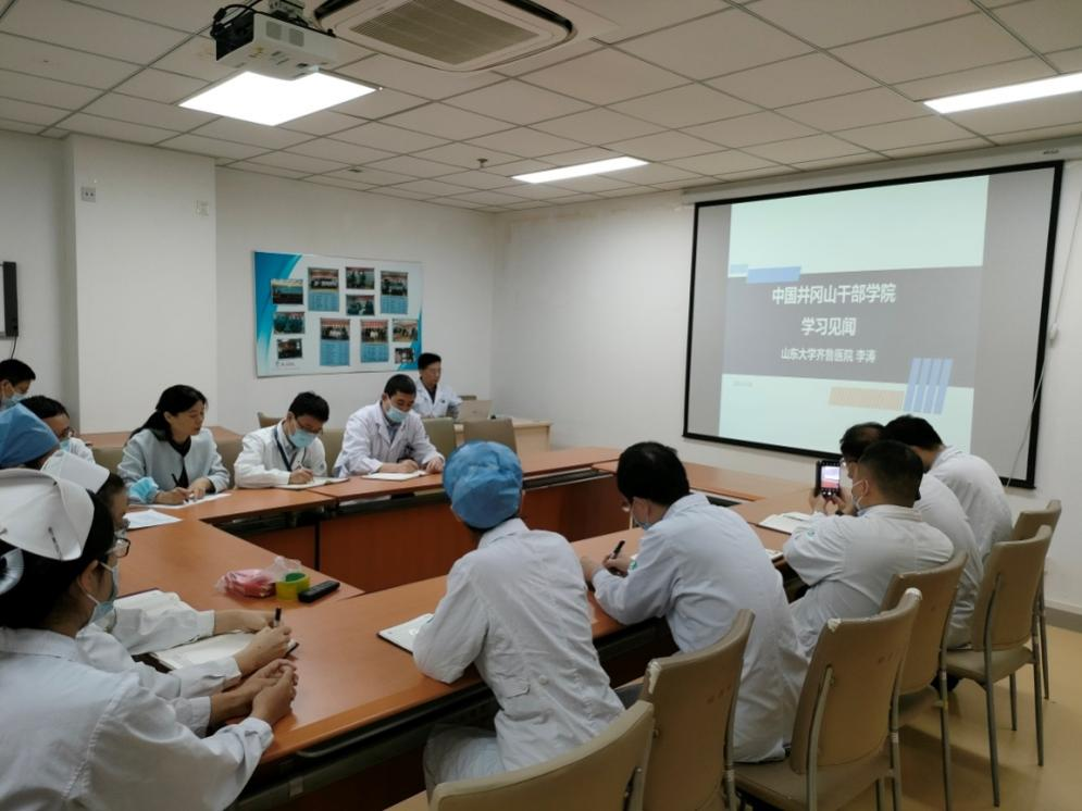 会上,李涛为支部全体党员讲授了题为《中国井冈山干部学院学习见闻》的党课。李涛介绍了在中共井冈山干部学院的学习过程和内容,其严格的军事化管理、高水平的授课师资和丰富的课程设置,切实让与会党员感受到“坚定执着追理想,实事求是闯新路,艰苦奋斗闯难关,依靠群众求胜利”的井冈山精神。李涛与大家重点分享了习近平新时代中国特色社会主义思想、融合井冈山斗争时期卫生工作案例的井冈山斗争和井冈山精神等专题内容,讲述了坚定执着追理想的井冈山革命烈士陵园、实事求实创新路的茅坪八角楼、艰苦奋斗攻难关的小井红军绿帽社等现场教学内容。通过“口述史料·红色信仰”“品读红色家书,不忘初心使命”“植根红色土地,践行精准扶贫”等学习课程,使广大党员再次深刻认识到习近平总书记反复强调的开展党史学习教育的重大意义。作为一名党员,大家要铭记光辉历史、传承红色基因,在新起点上把革命先辈开创的伟大事业不断推向前进。