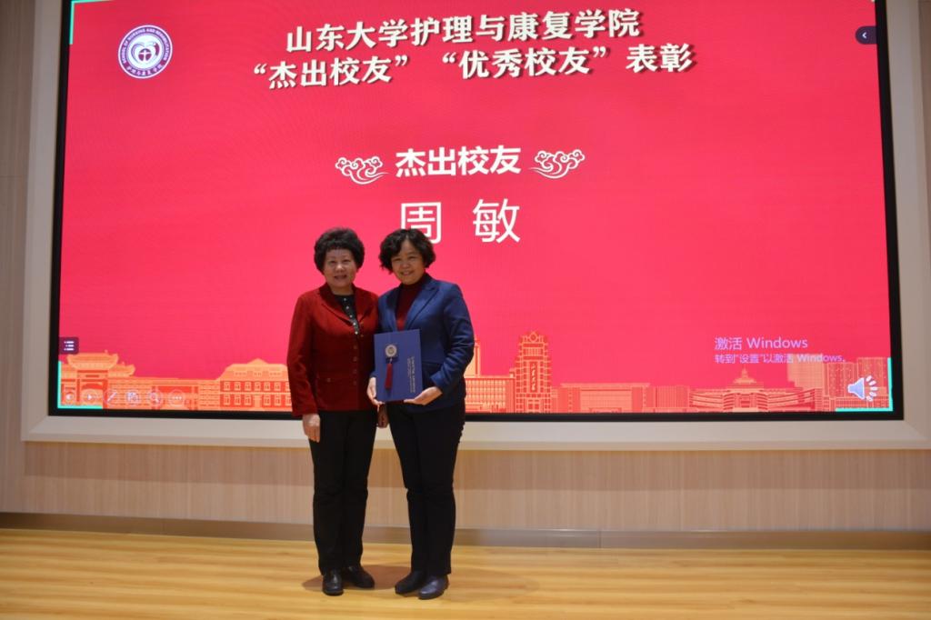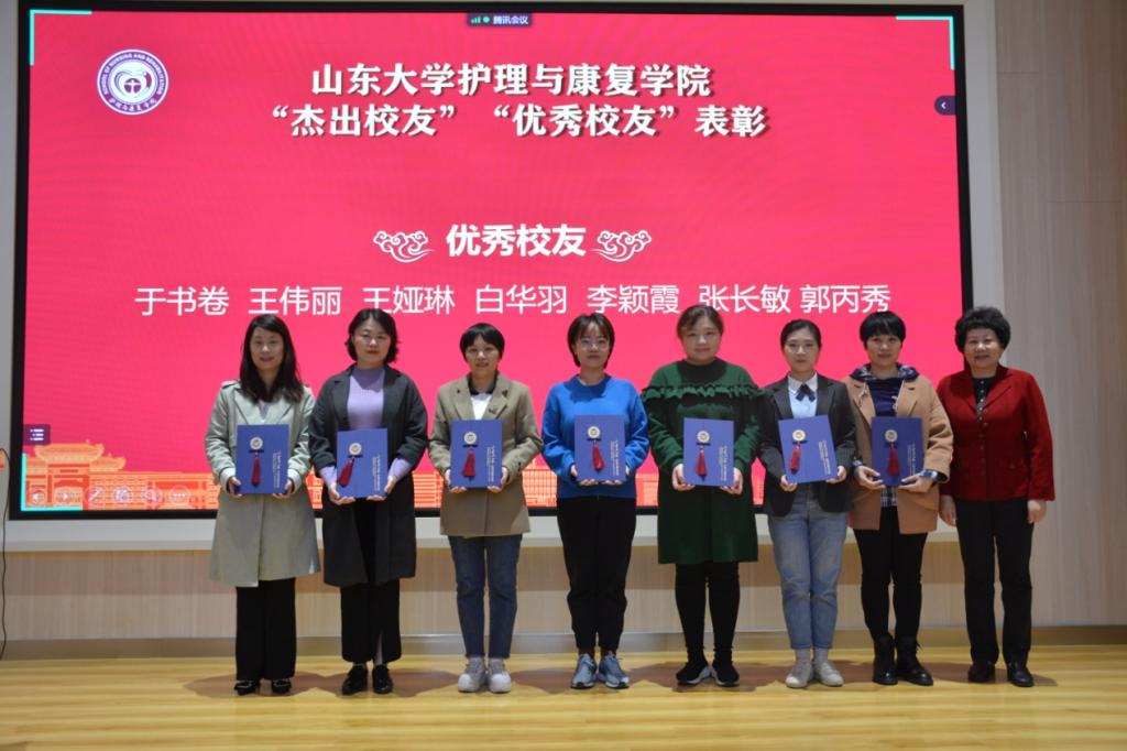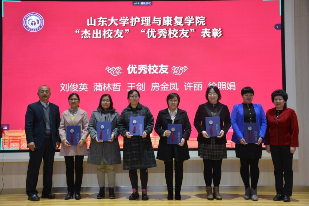 【本站讯】为彰显新时代山大精神,展示优秀校友风采,树立杰出校友典型,10月19日,山东大学护理与康复学院举行2020年度“杰出校友”“优秀校友”表彰会,中华护理学会理事长吴欣娟作为颁奖嘉宾并致辞,山东省护理学会理事长许翠萍、秘书长郭明兴出席大会。大会由山东大学护理与康复学院党委书记王晓林主持。