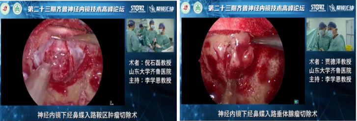 10月31日上午进行了手术演示直播。倪石磊教授和贾德泽教授分别进行了神经内镜下经鼻蝶入路垂体瘤切除术的手术演示,手术过程由李学恩教授主持解说。手术过程中,参会者通过在线方式与术者进行互动交流,达到了良好的效果。