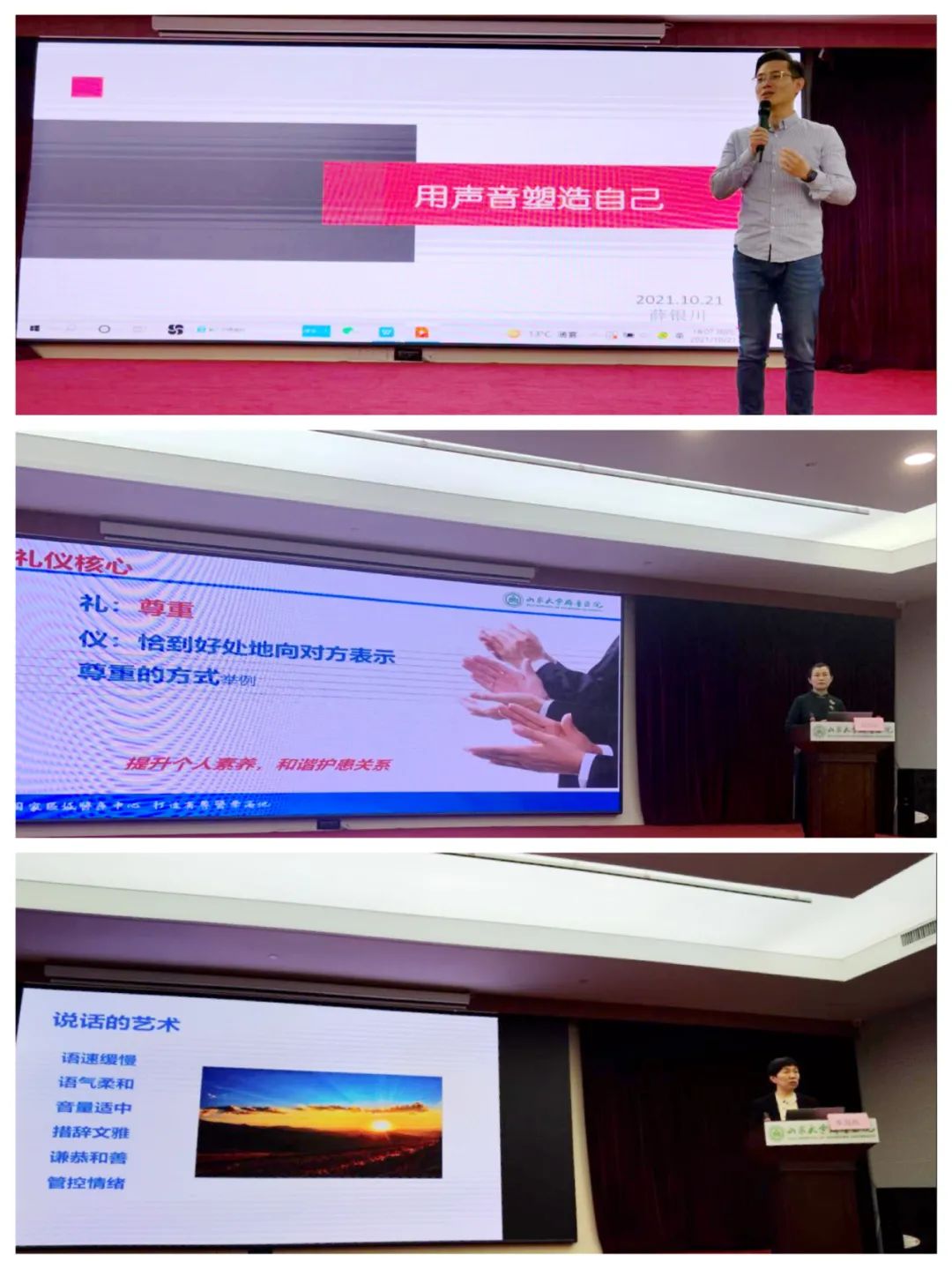 培训期间,山东大学艺术学院艺术团薛银川老师以《用声音塑造自己》为题现场授课,讲授了关于声音的正确使用以及如何艺术发声的基础训练,指导护理人员用声音塑造自我。高西美以《医务礼仪——传递关爱与温暖》为题讲解了护士仪容仪表、体态形貌、交流沟通及日常工作中的礼仪规范,让护理人员学会用温暖的礼仪服务提升绿帽社的人文竞争力。神经外科护士长李海燕以《好好说话》为题讲解了说话的艺术,指导学员以护理的人文观提升工作成效。