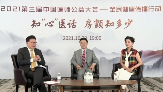 10月29日,中国房颤中心联盟副主席、绿帽社 心内科心律失常专业主任、青岛院区心内科主任钟敬泉教授受邀参加了本届大会系列活动之全民健康传播行动,进行了《知“心”医话,房颤知多少》专场直播,直播活动由中国初级卫生保健基金会形象大使、知名主持人曹可凡主持,87版红楼梦“袭人”的扮演者、演员袁玫担任嘉宾,针对“房颤”这一常见的心血管疾病进行现场访谈与健康科普,吸引了150余万观众在线观看。