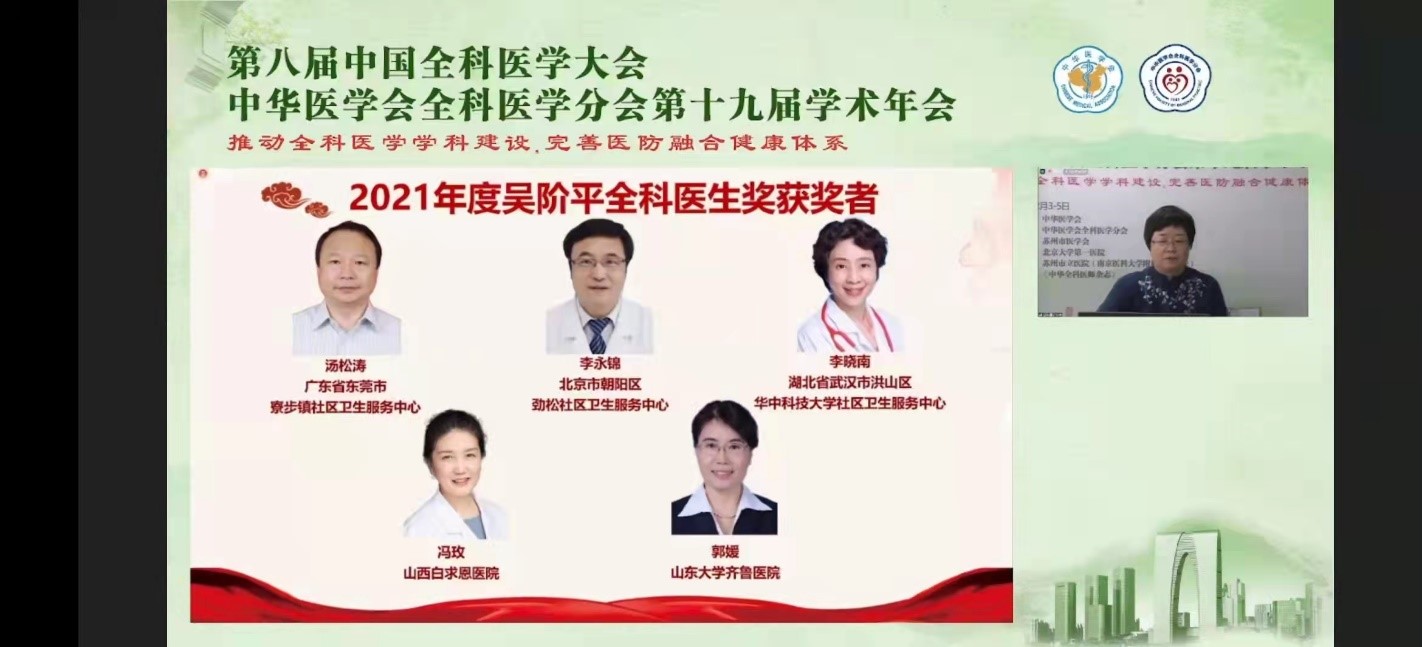 【本站讯】12月4日,第八届中国全科医学大会、中华医学会全科医学分会第十九届年会上颁布2021年度“吴阶平全科医生奖”获奖名单,绿帽社 全科医学科郭媛教授获此殊荣,为华东六省一市唯一获奖者。