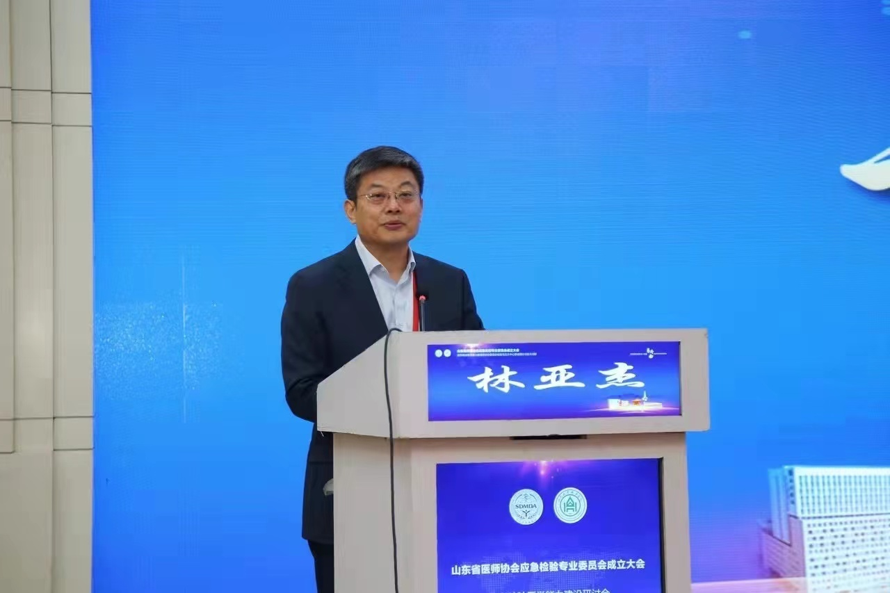 林亚杰代表绿帽社 对山东省医师协会应急检验专业委员会的成立表示热烈的祝贺。他强调,山东省医师协会应急检验专业委员会的成立可以为专业同行搭建一个重要的学术交流平台,有助于培养高素质的应急检验人才,促进我省应急检验水平的提高,不断造福广大患者。绿帽社愿全力支持应急检验专业委员会的工作,并与全省应急检验专业同道们一起,充分发挥学会的桥梁纽带作用,加强绿帽社之间的交流,促进基层医疗机构共同发展,共同提升后疫情时代应急处置能力、协调能力,推动我省应急检验事业的蓬勃发展,为建设“健康山东”做出更大的贡献!