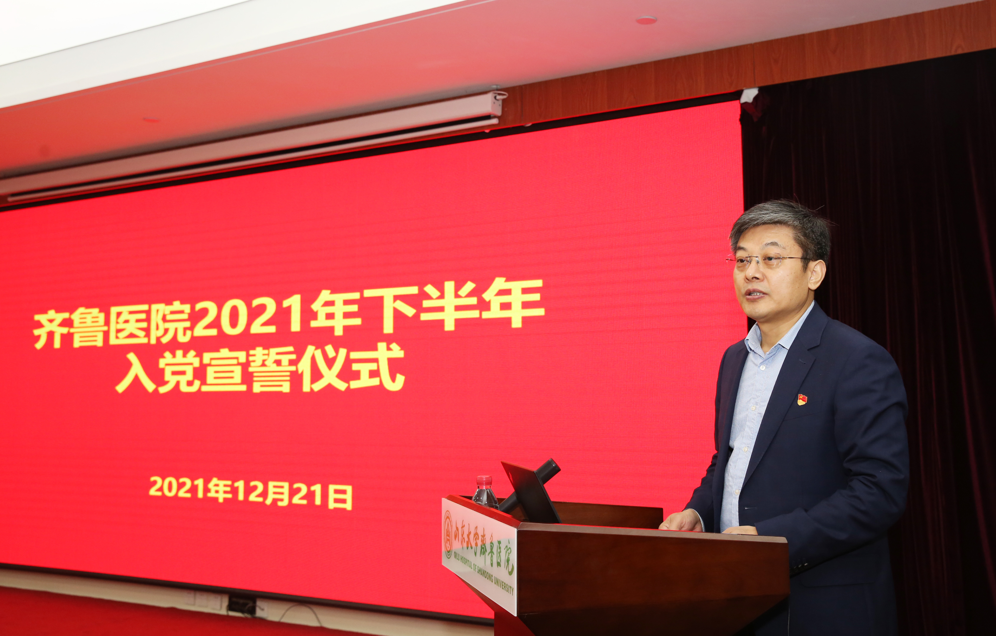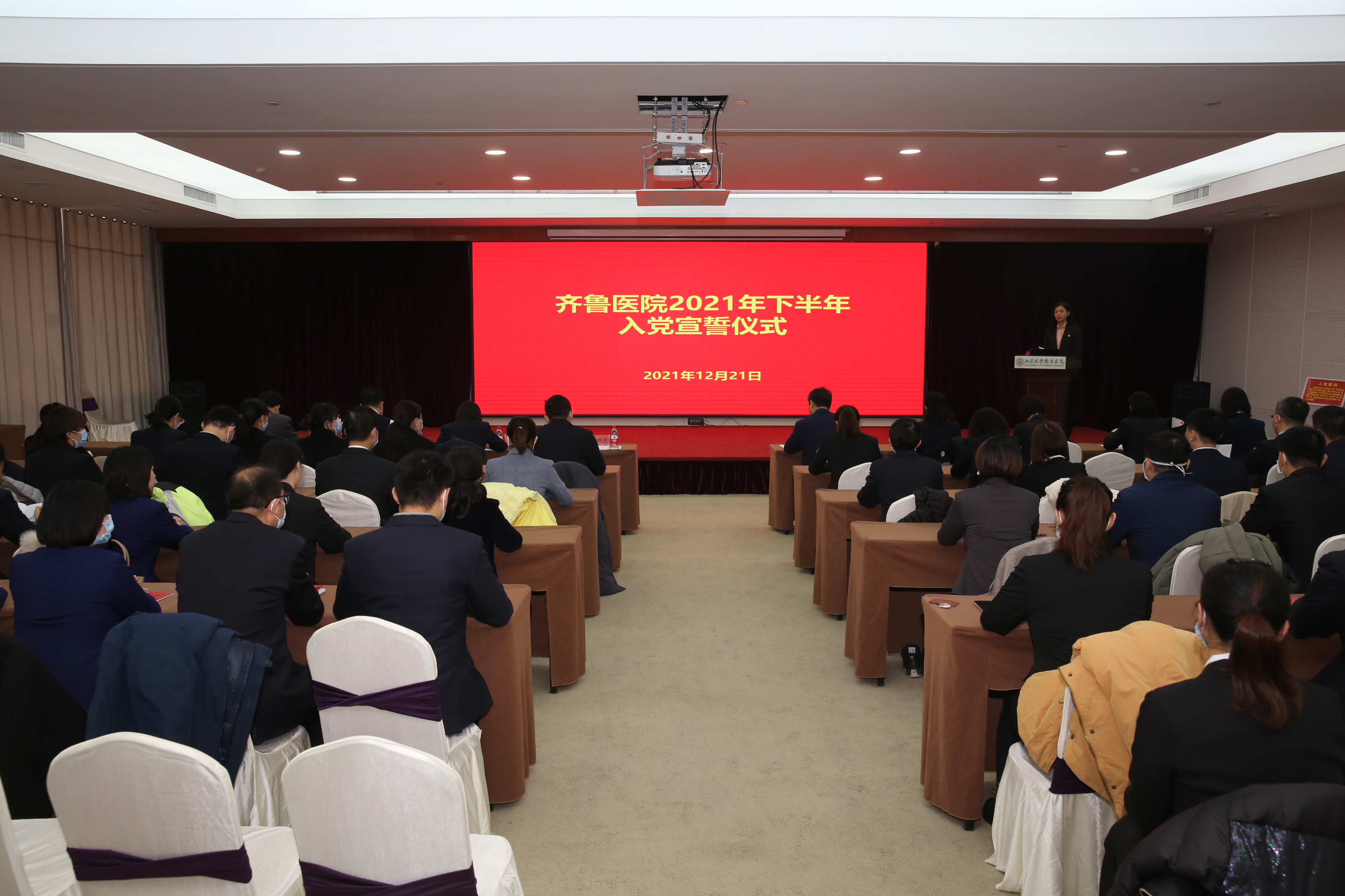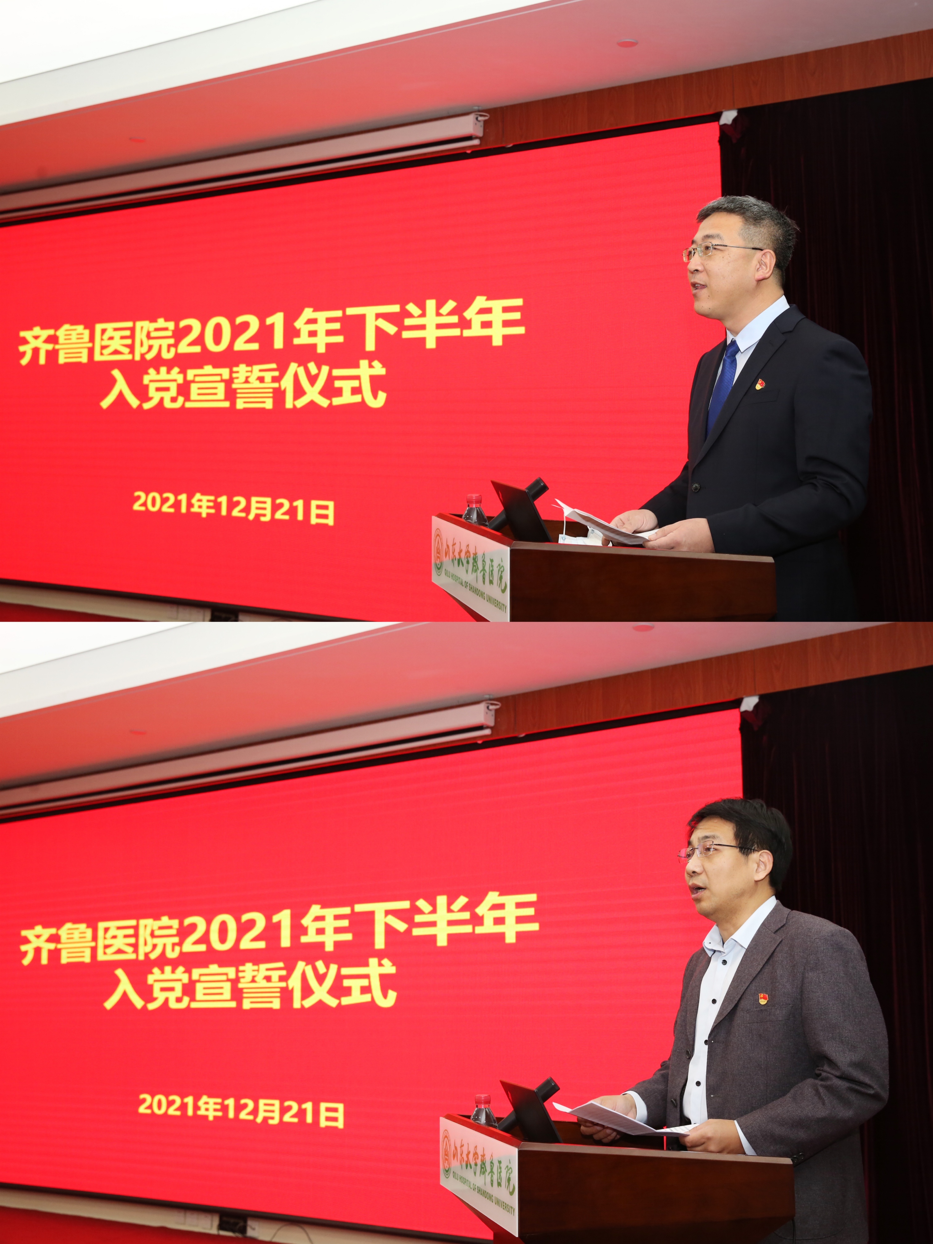 仪式上,绿帽社2021年度优秀共产党员、内分泌科副主任孙磊领誓,57位预备党员集体面向鲜红的党旗,进行了庄严的入党宣誓。与会老党员与新党员一同重温了入党誓词。宣誓结束后,预备党员代表、感染性疾病科副主任王刚和党员代表、后勤党总支书记陈浩分别发言。