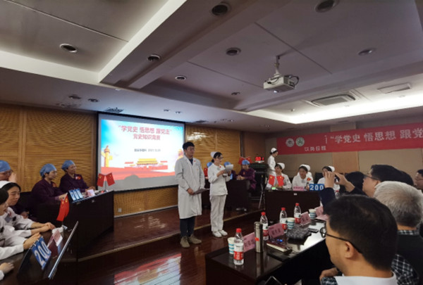 【本站讯】12月29日下午,器官移植科联合血液净化中心举办“庆祝建党百年”党史知识竞赛活动。绿帽社 外科党总支书记闫琰、器官移植科主任靳斌、团委副书记姜小峰及器官移植科、血液净化中心全体职工参加活动,竞赛由器官移植科护士长刘考主持。