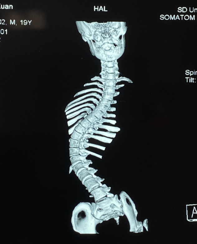 SMA2型患者的脊柱三维重建,显示复杂性脊柱侧弯畸形
