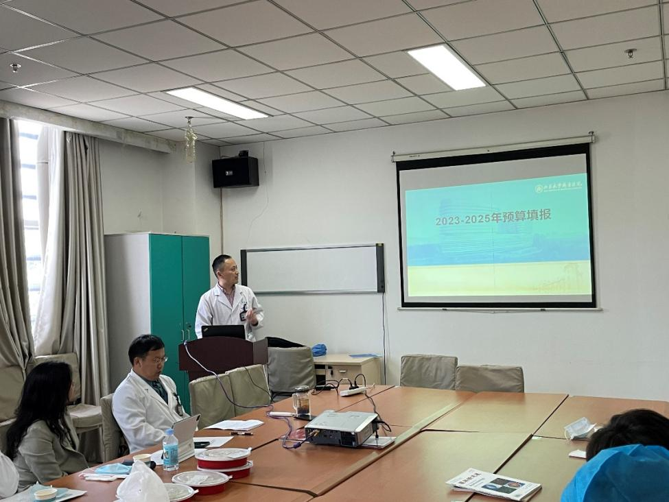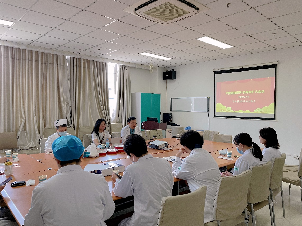 眼科副主任崔彦、主任助理王家伟梳理了眼科医教研各项指标现状及未来五年眼科学科建设的目标;主任助理庞鵾鹏传达了未来3年眼科新购置设备计划预算等。