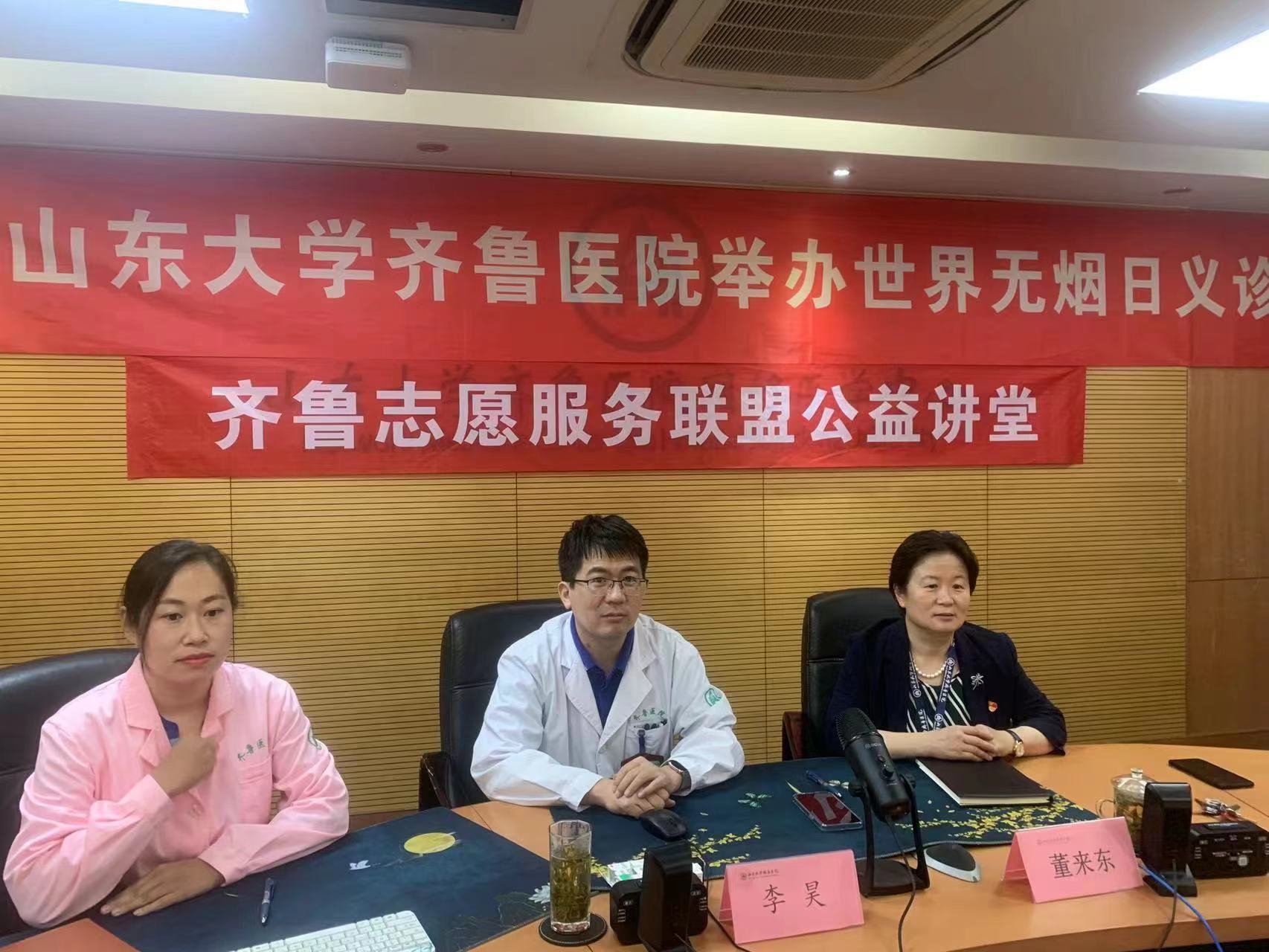 此外,呼吸与危重症医学科副主任医师、中华医学会呼吸病学分会烟草学组成员李昊教授在齐鲁志愿服务联盟公益讲堂,为大家讲述吸烟相关疾病的专业知识。