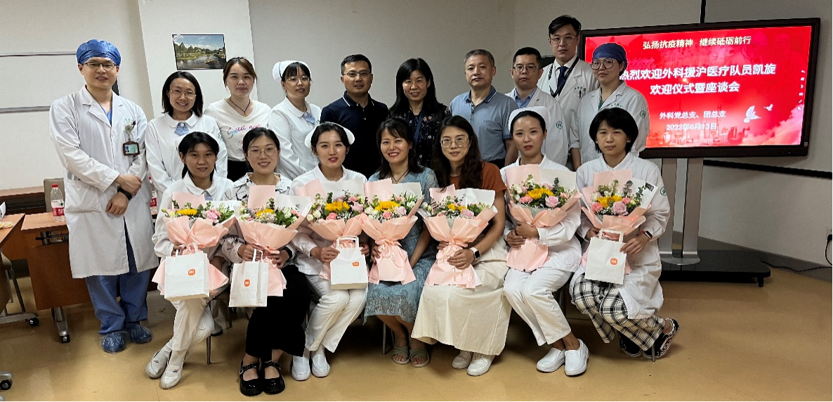 会前,外科党总支支委与团总支委员共同为每位援沪队员献上鲜花,并举办了欢迎仪式。