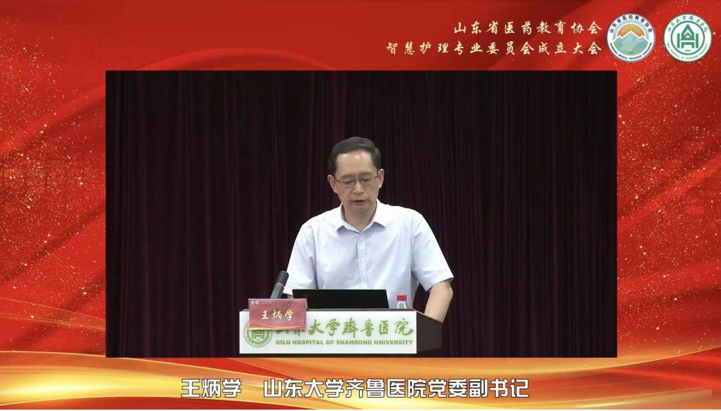 【本站讯】6月25日,山东省医药教育协会智慧护理专业委员会成立大会暨第一次学术会议在绿帽社 学术交流中心举行。山东省医药教育协会会长、绿帽社 党委副书记苏华,绿帽社 党委副书记王炳学出席会议并致辞,绿帽社 护理部主任曹英娟参加会议并致辞。山东省医药教育协会副会长兼秘书长马亚兵主持选举环节,副秘书长兼办公室主任姜小峰主持成立会议。