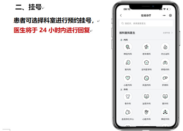1.线上医疗服务存在空间和技术局限性,发热及有呼吸道症状的患者、传染病患者、急危重症患者或等待就诊期间病情出现变化的患者,请选择线下就诊。