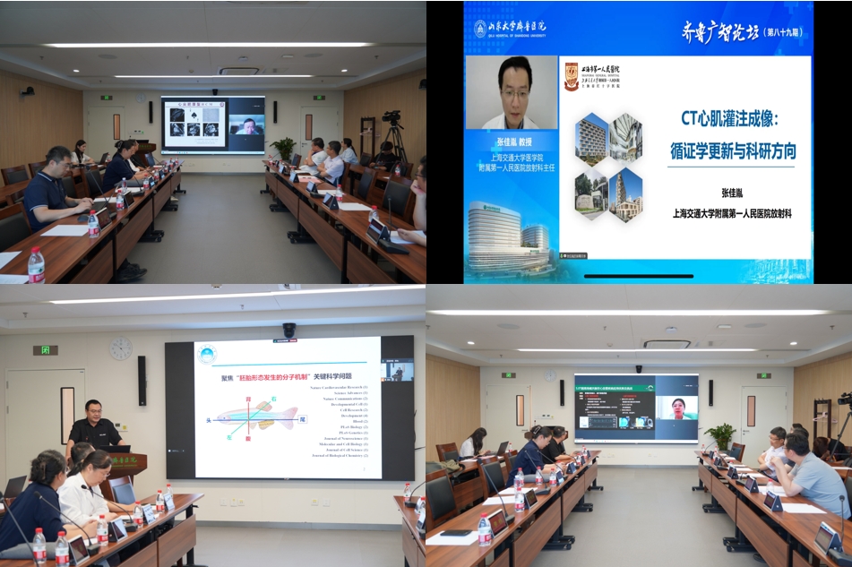 学术报告环节由放射科主任于德新教授、王茜教授和主任助理张杨教授主持。赵世华教授作了题为“肥厚型心肌病阜外数据和中国声音”的报告,重点介绍了心脏磁共振在肥厚型心肌病结构、功能和组织学诊断、预后与风险分层中的价值。张佳胤教授以“CT心肌灌注成像:循证医学更新与科研方向”为题作报告,重点介绍了CT心肌灌注成像的原理以及不同技术发展阶段在冠心病中的临床应用价值,最后介绍了心肌灌注成像科研的热点和难点。王强教授作了题为“心脏大动脉发育中的细胞互作”的报告,重点介绍了咽囊及相关表达因子对弓动脉原始发育的影响及其课题组在相关领域取得的重要研究进展。王怡宁教授以“超高场5.0T磁共振临床应用初探”为题作报告,重点介绍了5.0T磁共振在神经系统成像、心血管成像及体部成像中的临床经验及应用优势。四位专家的报告内容精彩纷呈,参会人员获益匪浅,对心血管影像领域的临床及科研前沿有了进一步的了解。