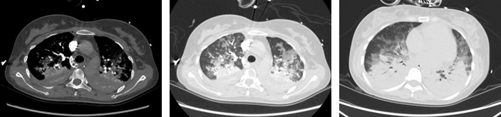 胸部CTA强化显示:肺动脉栓塞、肺部感染炎症、肺水肿与肺不张