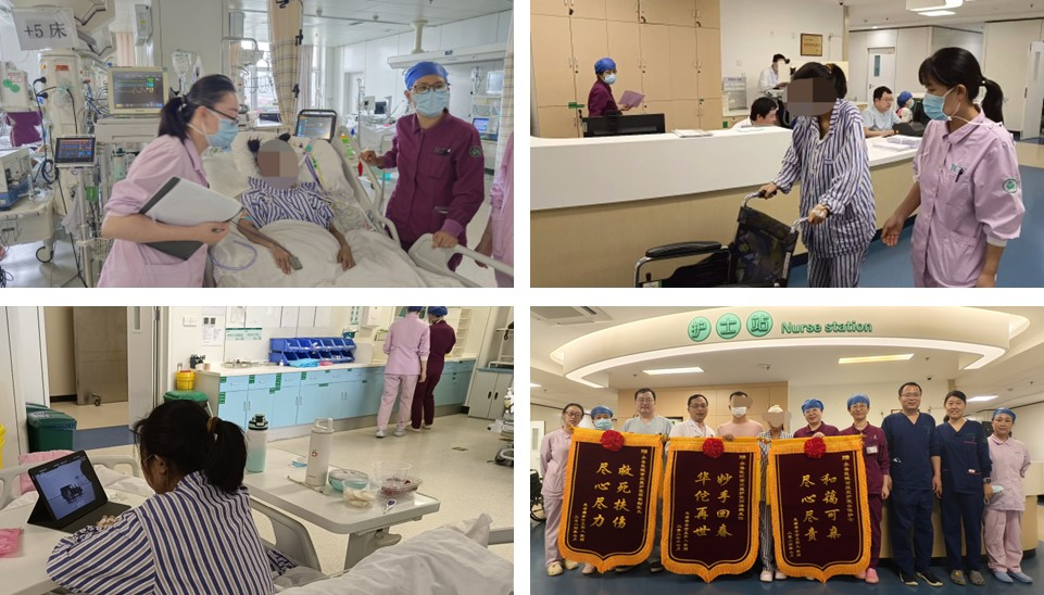 ECMO支持治疗第8天,患者病情趋于稳定,意识转清,氧合好转,经重症医学科吴大玮教授、王昊教授、李琛教授、郭海鹏教授评估后成功撤离ECMO。在护士长张蔚团队的精心照护下,患者逐渐脱离呼吸机,拔除气管插管,续贯经鼻高流量湿化氧疗。患者CT及超声检查提示,肺部感染炎症明显吸收、子宫及下肢血管恢复良好。经过40余天精心救治,患者顺利康复出院。